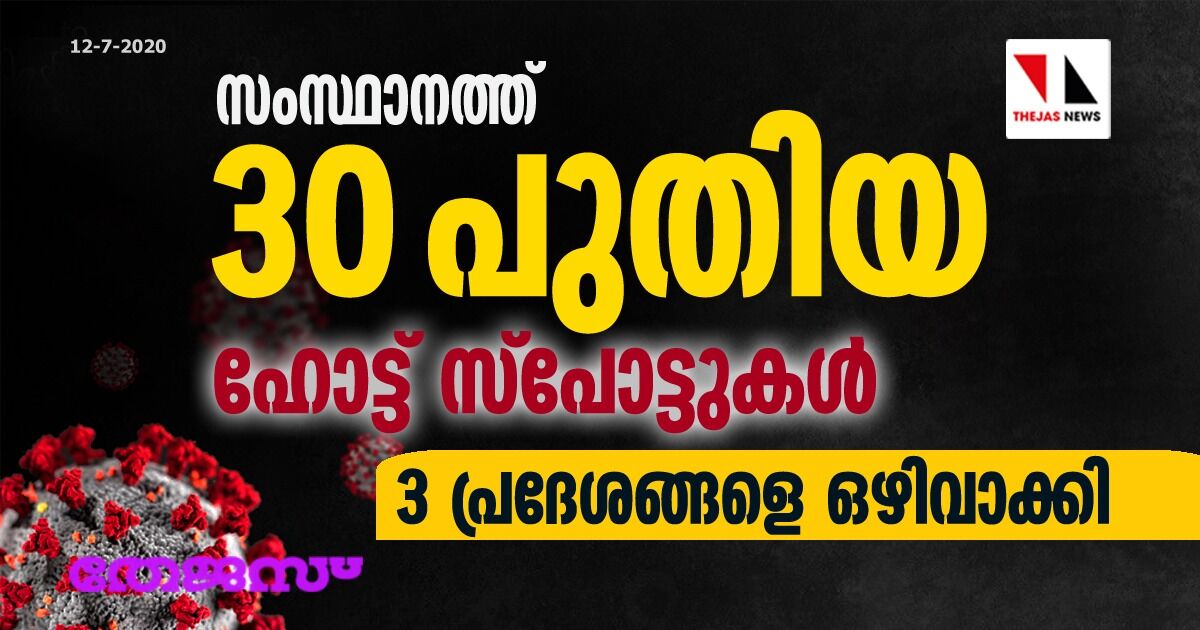 സംസ്ഥാനത്ത് 30 പുതിയ ഹോട്ട് സ്പോട്ടുകള്; 3 പ്രദേശങ്ങളെ ഒഴിവാക്കി