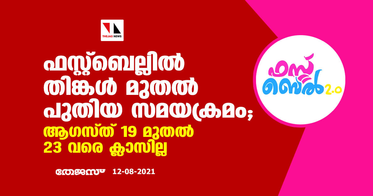 ഫസ്റ്റ്ബെല്ലിൽ തിങ്കൾ മുതൽ പുതിയ സമയക്രമം; ആഗസ്ത് 19 മുതൽ 23 വരെ ക്ലാസില്ല