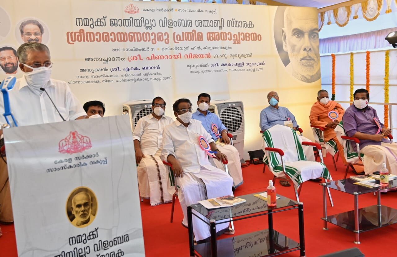 തിരുവനന്തപുരത്ത് സാംസ്കാരിക വകുപ്പ് സ്ഥാപിച്ച ശ്രീനാരായണ ഗുരുവിൻ്റെ പ്രതിമ അനാച്ഛാദനം ചെയ്യുകയായിരുന്നു മുഖ്യമന്ത്രി.