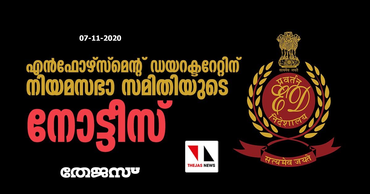 എന്ഫോഴ്സ്മെന്റ് ഡയറക്ടറേറ്റിന് നിയമസഭാ സമിതിയുടെ നോട്ടീസ്