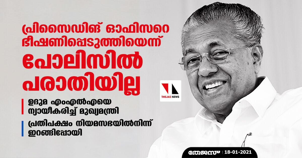 പ്രിസൈഡിങ് ഓഫിസറെ ഭീഷണിപ്പെടുത്തിയെന്ന് പോലിസില് പരാതിയില്ല; ഉദുമ എംഎല്എയെ ന്യായീകരിച്ച് മുഖ്യമന്ത്രി
