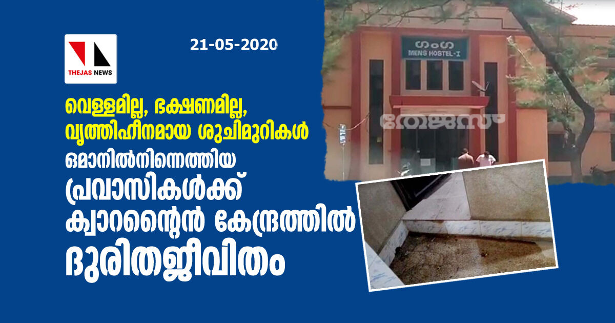 വെള്ളമില്ല, ഭക്ഷണമില്ല, വൃത്തിഹീനമായ ശുചിമുറികള്; ഒമാനില്നിന്നെത്തിയ പ്രവാസികള്ക്ക് ക്വാറന്റൈന് കേന്ദ്രത്തില് ദുരിതജീവിതം