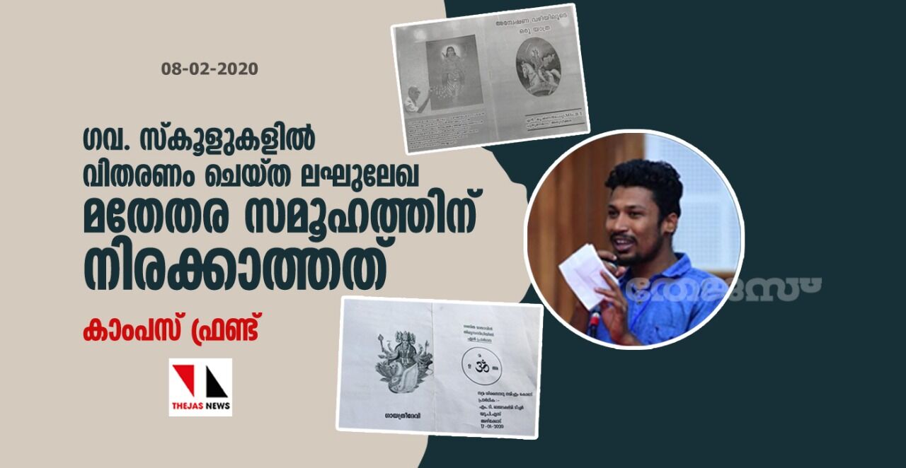 ഗവ.സ്കൂളുകളില് വിതരണം ചെയ്ത ലഘുലേഖ മതേതര സമൂഹത്തിന് നിരക്കാത്തത്: കാംപസ് ഫ്രണ്ട്