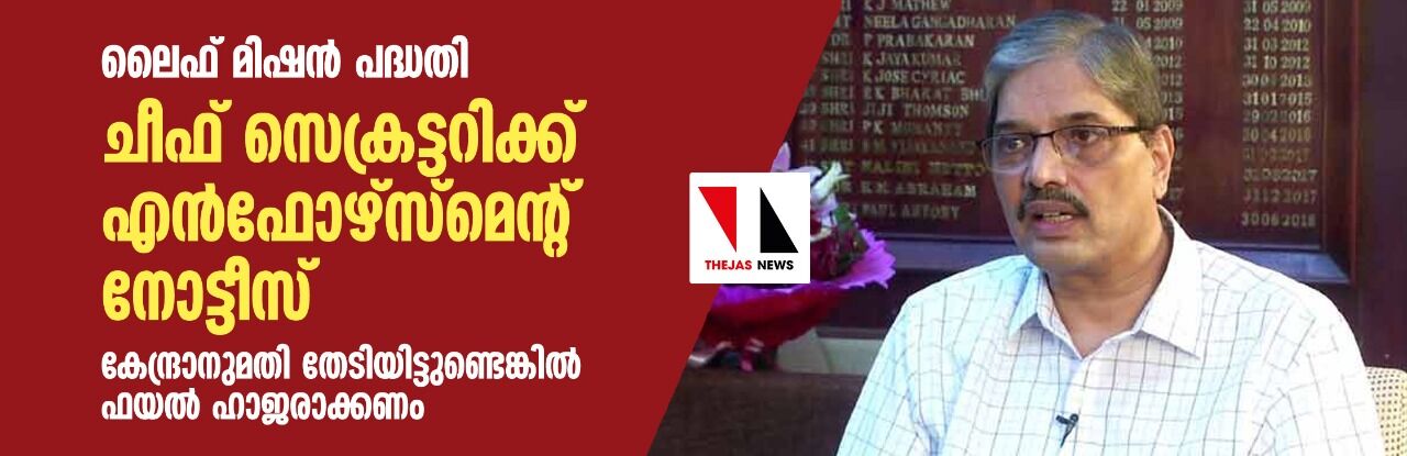 ലൈഫ് മിഷന് പദ്ധതി: ചീഫ് സെക്രട്ടറിക്ക് എന്ഫോഴ്സ്മെൻ്റ് നോട്ടീസ്