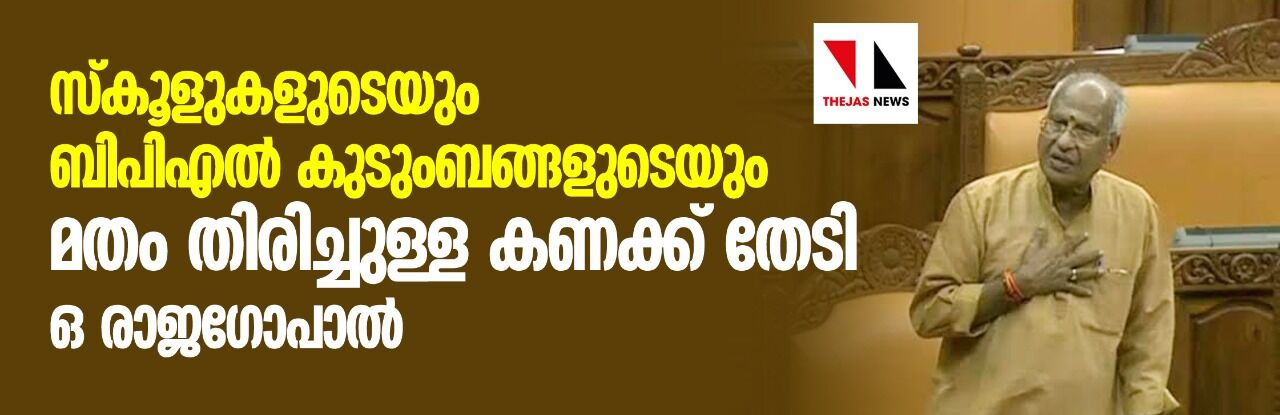 സ്കൂളുകളുടേയും ബിപിഎല് കുടുംബങ്ങളുടേയും മതം തിരിച്ചുള്ള കണക്ക് തേടി ഒ രാജഗോപാൽ