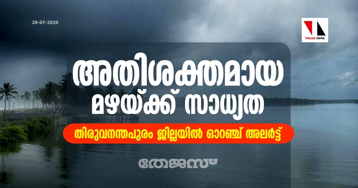 അതിശക്തമായ മഴയ്ക്ക് സാധ്യത; തിരുവനന്തപുരം ജില്ലയിൽ ഓറഞ്ച് അലർട്ട്