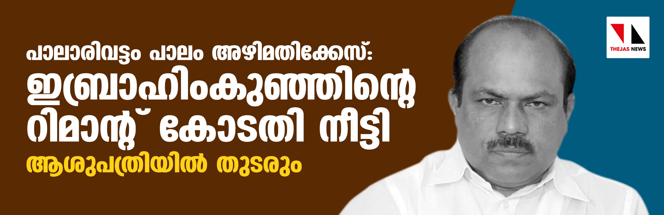 പാലാരിവട്ടം പാലം അഴിമതിക്കേസ്: ഇബ്രാഹിംകുഞ്ഞിന്റെ റിമാന്റ് കോടതി നീട്ടി;ആശുപത്രിയില് തുടരും