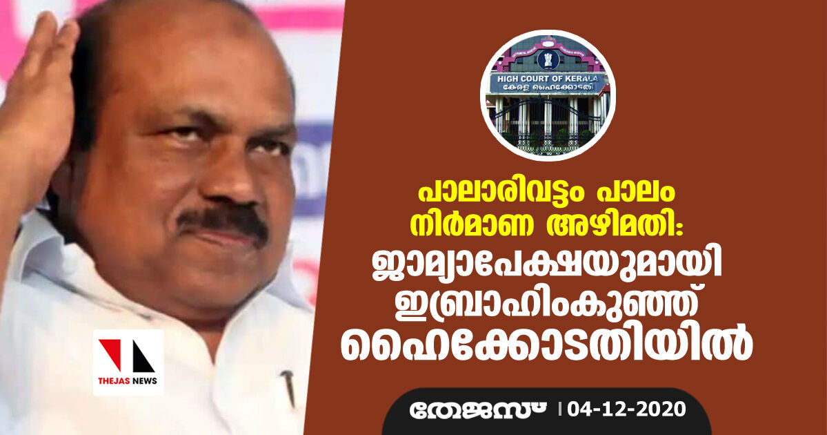പാലാരിവട്ടം പാലം നിര്മാണ അഴിമതി: ജാമ്യാപേക്ഷയുമായി ഇബ്രാഹിംകുഞ്ഞ് ഹൈക്കോടതിയില്