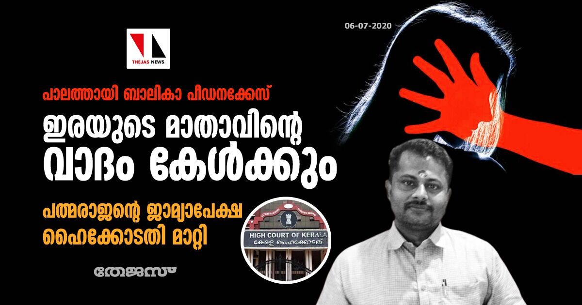 കേസിലെ പ്രതി ബിജെപി മുന് പഞ്ചായത്ത് പ്രസിഡന്റും പീഡനത്തിനിരയായ പത്തു വയസ്സുകാരി പഠിച്ച സ്കൂളിലെ അധ്യാപകനുമായ പാനൂര് കടവത്തൂര് മുണ്ടത്തോട്ടെ കുറുങ്ങാട്ട്കുനിയില് കെ പത്മരാജന് ആണ് ജാമ്യാപേക്ഷയുമായി ഹൈക്കോടതിയെ സമീപ്പിച്ചത്.കേസ് ഹൈക്കോടതി ഇന്ന് പരിഗണിച്ചുവെങ്കിലും ബുധനാഴ്ചയിലേക്ക് മാറ്റുകയായിരുന്നു.ഇരയാക്കപ്പെട്ട പെണ്കുട്ടിയുടെ മാതാവിന്റെ വാദം കോടതി കേള്ക്കും. മാതാവിനോട് ഹാജരാകാന് ഹൈക്കോടതി നിര്ദേശം നല്കി.ഇത് സംബന്ധിച്ച നോട്ടീസ് പെണ്കുട്ടിയുടെ മാതാവിന് നേരിട്ട് കൈമാറാന് അന്വേഷണ ഉദ്യോഗസ്ഥന് കോടതി നിര്ദേശം നല്കി.ഈ വിവരം അന്വേഷണ ഉദ്യോഗസ്ഥനെ അറിയിക്കാന് കേസിലെ പബ്ലിക് പ്രോസിക്യൂട്ടറോട് ഹൈക്കോടതി നിര്ദേശിച്ചു