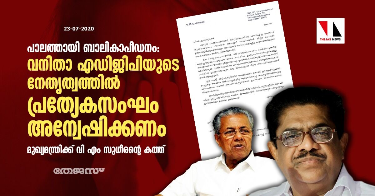 പാലത്തായി ബാലികാപീഡനം: വനിതാ എഡിജിപിയുടെ നേതൃത്വത്തില് പ്രത്യേകസംഘം അന്വേഷിക്കണം; മുഖ്യമന്ത്രിക്ക് വി എം സുധീരന്റെ കത്ത്