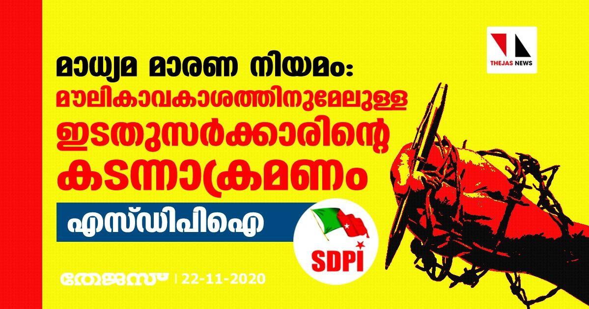 മാധ്യമ മാരണ നിയമം: മൗലികാവകാശത്തിനുമേലുള്ള ഇടതുസര്ക്കാരിന്റെ കടന്നാക്രമണം- എസ് ഡിപിഐ