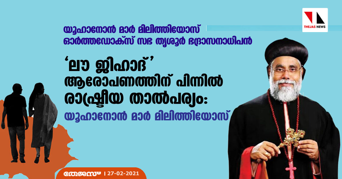 'ലൗ ജിഹാദ്' ആരോപണത്തിന് പിന്നില് രാഷ്ട്രീയ താല്പര്യം: യൂഹാനോന് മാര് മിലിത്തിയോസ്