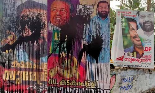 മന്ത്രി കടകംപള്ളി സുരേന്ദ്രന്റെ പ്രചാരണ ബോര്ഡുകളില് കരി ഓയില് ഒഴിച്ചു
