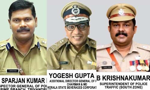 യോഗേഷ് ഗുപ്ത നിലവില് ബിവറേജസ് കോര്പറേഷന് ചെയര്മാന് ആന്റ് മാനേജിംഗ് ഡയറക്ടറാണ്. ഏഴുവര്ഷത്തോളം ഡല്ഹിയിലും കൊല്ക്കത്തയിലും എന്ഫോഴ്സ്മെന്റ് ഡയറക്ടറേറ്റില് ജോലിചെയ്തു. വിവിധ സാമ്പത്തിക കുറ്റകൃത്യങ്ങള് അന്വേഷിച്ച് തെളിയിച്ചു. തിരുവനന്തപുരം, കൊല്ലം ജില്ലകളില് എസ്പിയായും സാമ്പത്തിക കുറ്റാന്വേഷണ വിഭാഗം, റോഡ് സേഫ്റ്റി ട്രാഫിക്ക്, ഇന്റലിജന്സ്, അഡ്മിനിസ്ട്രേഷന് എന്നിവിടങ്ങളില് ഐജിയായും ജോലി നോക്കി. സപ്ലൈകോ, കേരളാ ഫിനാന്ഷ്യല് കോര്പ്പറേഷന് എന്നിവിടങ്ങളില് സിഎംഡി ആയിരുന്നു. സിബിഐയിലും ജോലിചെയ്തിട്ടുണ്ട്. ഐജി ജി സ്പര്ജന്കുമാര് നിലവില് ക്രൈംബ്രാഞ്ച് തിരുവനന്തപുരം റെയ്ഞ്ച് ഐജിയാണ്.
