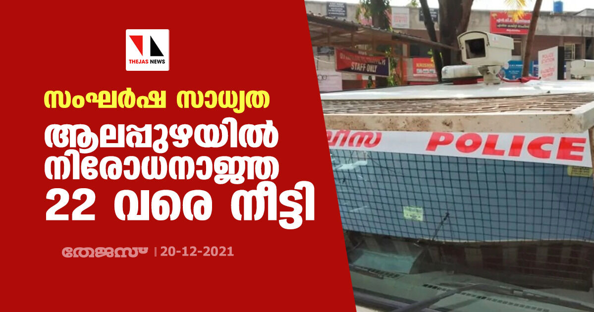 സംഘര്ഷ സാധ്യത: ആലപ്പുഴയില് നിരോധനാജ്ഞ 22 വരെ നീട്ടി