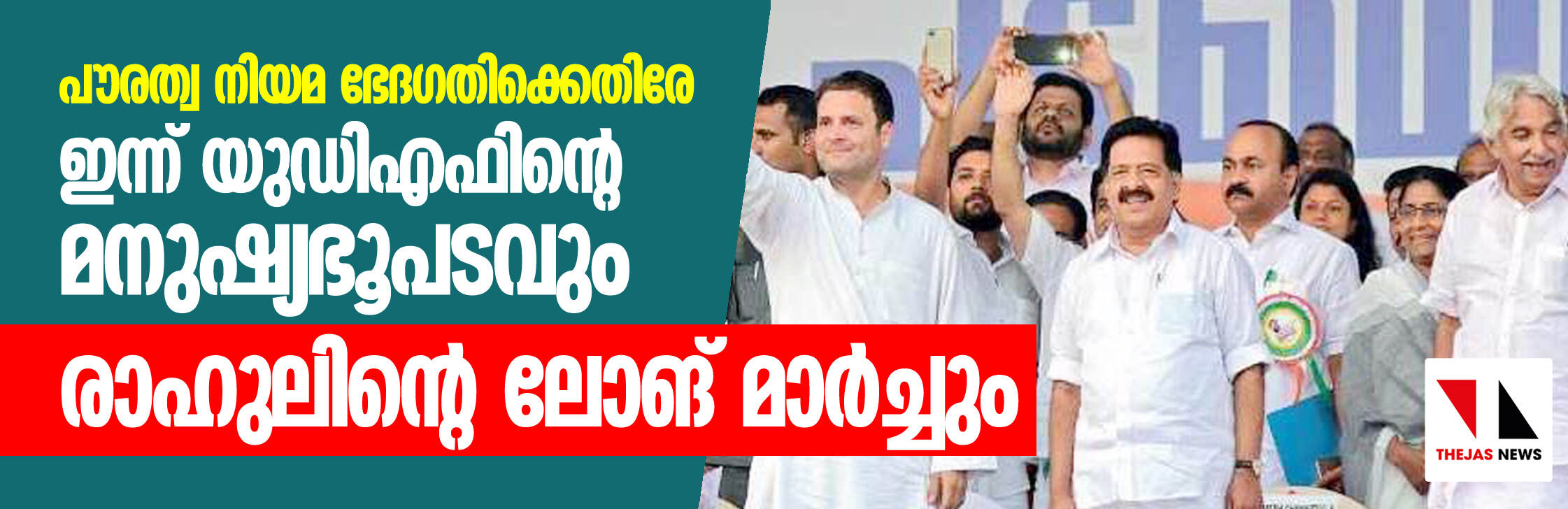 പൗരത്വ നിയമ ഭേദഗതിക്കെതിരേ ഇന്ന് യുഡിഎഫിന്റെ മനുഷ്യഭൂപടവും രാഹുലിന്റെ ലോങ് മാര്ച്ചും
