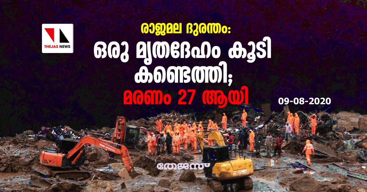 രാജമല ദുരന്തം: ഒരു മൃതദേഹം കൂടി കണ്ടെത്തി; മരണം 27 ആയി