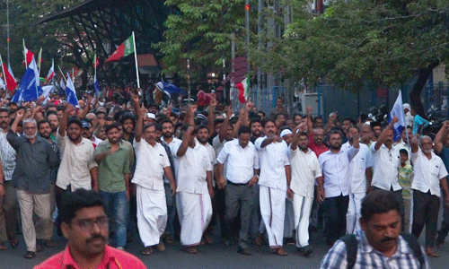 കോഴിക്കോട്: സംയുക്ത സമിതി പ്രഖ്യാപിച്ച ഹര്ത്താലിനോടനുബന്ധിച്ചു വൈകുന്നേരം കോഴിക്കോട് സംഘടിപ്പിച്ച ജനകീയ റാലി കേന്ദ്ര സര്ക്കാരിന് താക്കീതായി. മര്കസ് കോംപ്ലക്സ് പരിസരത്തു നിന്ന് ആരംഭിച്ച റാലി മാവൂര് റോഡ് വഴി കിഡ്സണ് കോര്ണറില് സമാപിച്ചു. സര്ക്കാരും മുഖ്യധാരാ രാഷ്ട്രീയ പാര്ട്ടികളും സംഘടനകളും ശക്തമായി എതിര്ത്തിട്ടും ഹര്ത്താല് വന്വിജയമായത് പൊതുജനങ്ങളുടെ കലവറയില്ലാത്ത പിന്തുണ കൊണ്ടാണെന്നു സമാപന സമ്മേളനത്തെ അഭിസംബോധന ചെയിതു സംസാരിച്ചവര് പറഞ്ഞു.