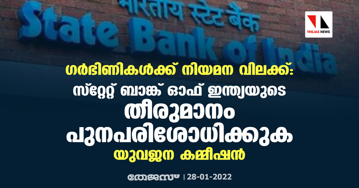 ഗർഭിണികൾക്ക് നിയമന വിലക്ക്: സ്റ്റേറ്റ് ബാങ്ക് ഓഫ് ഇന്ത്യയുടെ തീരുമാനം പുനപരിശോധിക്കുക: യുവജന കമ്മീഷൻ