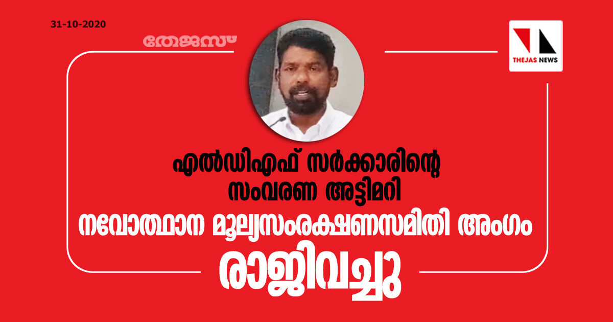 എല്ഡിഎഫ് സര്ക്കാരിന്റെ സംവരണ അട്ടിമറി; നവോത്ഥാന മൂല്യസംരക്ഷണസമിതി അംഗം രാജിവച്ചു