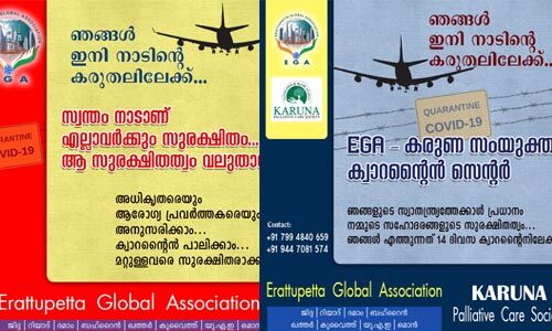 കൂടുതല് പ്രവാസികളെത്തുമ്പോള് നാമൊരുക്കിയ സൗകര്യങ്ങള് മതിയാവാതെ വരുമെന്നതിലാണ് ഇജിഎയും കരുണയും സംയുക്തമായി വിപുലമായ ക്വാറന്റൈന് സൗകര്യമൊരുക്കിയിരിക്കുന്നതെന്നും ലോകമെമ്പാടുമുള്ള ഈരാറ്റുപേട്ടക്കാരുടെ കൂട്ടായ്മയായ സംഘടനാ ഭാരവാഹികള് പറഞ്ഞു. ഒരുപാട് വെല്ലുവിളികള് ഏറ്റെടുത്താണ് ഇജിഎ ഈ സൗകര്യങ്ങളൊരുക്കാന് മുന്നിട്ടിറങ്ങിയത്. പല വാതിലുകളും മുട്ടിയിട്ടും നാട്ടുകാരുടെ അജ്ഞതമൂലമുണ്ടായ എതിര്പ്പുകള്കൊണ്ട് സഹായമുണ്ടായില്ല. കരുണയുമായി ബന്ധപ്പെട്ട് സംയുക്തമായ അന്വേഷണത്തില് ലഭിച്ച വളരെ സൗകര്യപ്രദവും സുരക്ഷിതവുമായ സ്ഥലത്ത് ആരോഗ്യവകുപ്പിന്റെയും മുനിസിപ്പല് അധികാരികളുടെയും പൂര്ണസഹകരണത്തോടെ എല്ലാ സുരക്ഷാമാനദണ്ഡങ്ങളും പാലിച്ചാണ് ക്വാറന്റൈന് തയ്യാറായിരിക്കുന്നതെന്നും ഭാരവാഹികള് കൂട്ടിച്ചേര്ത്തു.