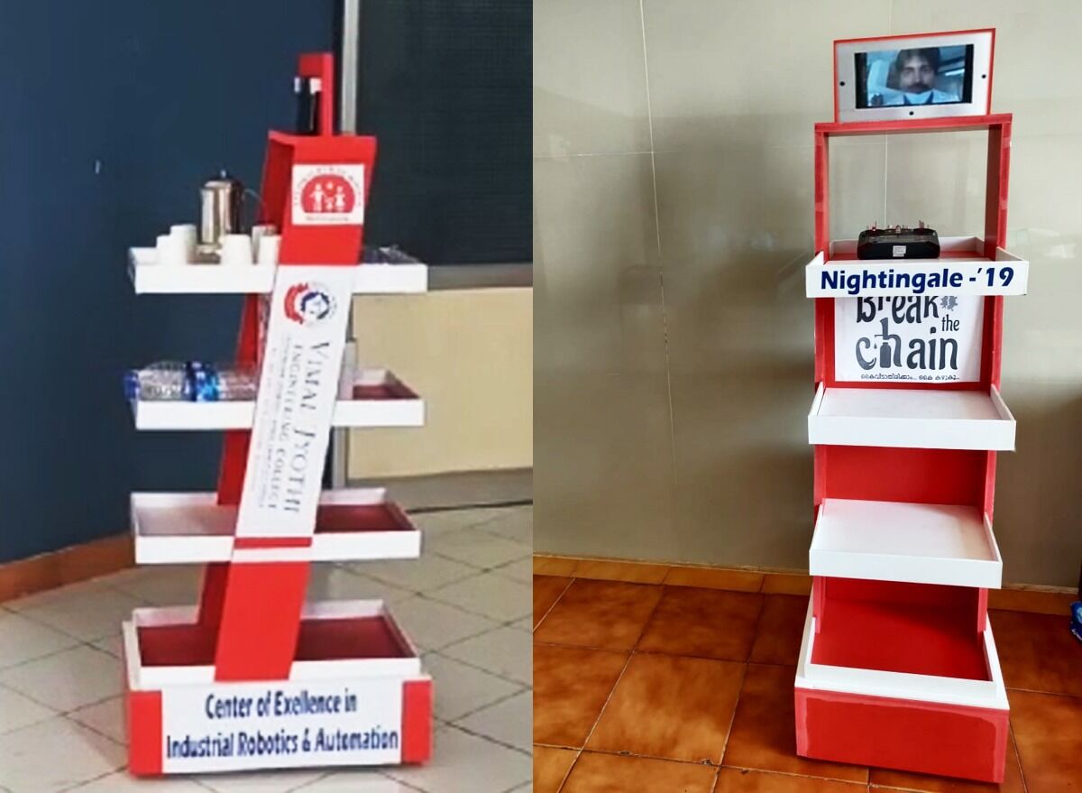 ആരോഗ്യ വകുപ്പിന്റെ നേതൃത്വത്തില് ചെമ്പേരി വിമല്ജ്യോതി എഞ്ചിനീയറിങ് കോളജിലെ വിദ്യാര്ത്ഥികളാണ് 'നൈറ്റിംഗല്-19' രൂപകല്പന ചെയ്തത്. ചൈനയേക്കാള് വെല്ലുന്ന സാങ്കേതികവിദ്യയാണ് ഇതില് ഉപയോഗിച്ചിരിക്കുന്നത്. ചൈനയില് ഭക്ഷണവും മരുന്നും മാത്രം നല്കാനാണ് റോബോട്ടിനെ ഉപയോഗിച്ചത്. എന്നാല് ഇതില് ഘടിപ്പിച്ച പ്രത്യേക ഡിസ്പ്ലേയിലൂടെ ജീവനക്കാരുമായോ ബന്ധുക്കളുമായോ കണ്ട് സംസാരിക്കാവുന്നതാണ്.