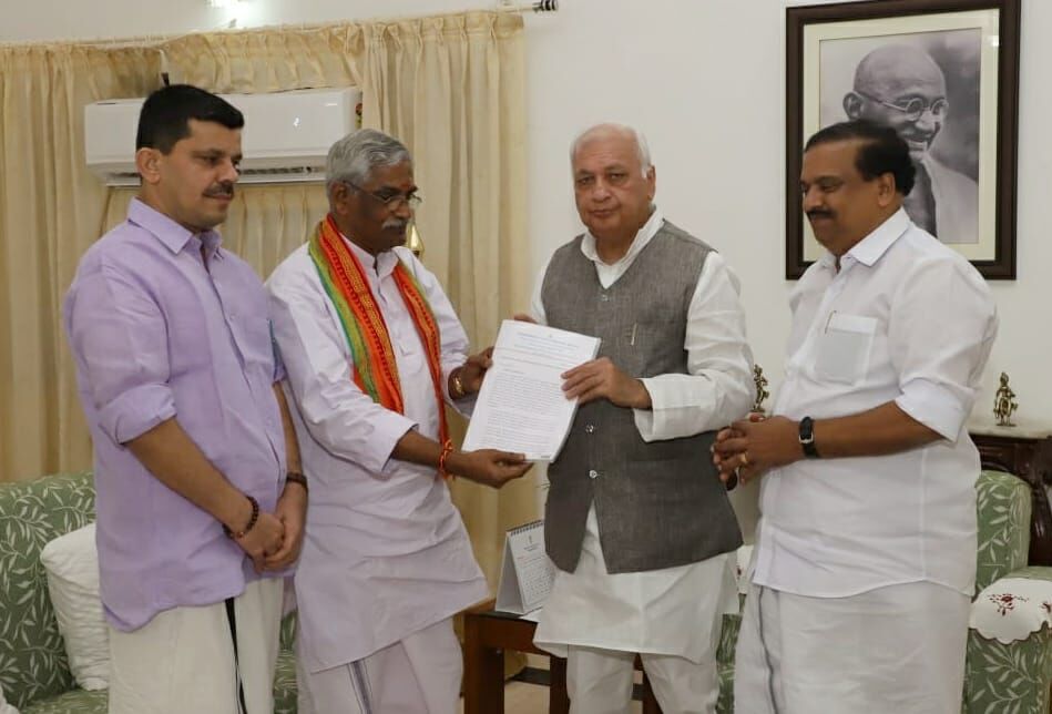 തെറ്റായ വാര്ത്തകള് നല്കി മതവിദ്വേഷം പ്രചരിപ്പിക്കുന്ന മാധ്യമ നടപടികളെക്കുറിച്ച് അന്വേഷിക്കണമെന്നും നിവേദനത്തില് ആവശ്യപ്പെട്ടു. ആര്എസ്എസ് പ്രാന്ത കാര്യവാഹ് പി ഗോപാലന്കുട്ടി മാസ്റ്റര്, വിദ്യാര്ത്ഥി പ്രമുഖ് വല്സന് തില്ലങ്കേരി, ബിജെപി നേതാക്കളായ പി കെ കൃഷ്ണദാസ്, എം ഗണേഷ് എന്നിവരാണ് നിവേദന സംഘത്തിലുണ്ടായിരുന്നത്.
