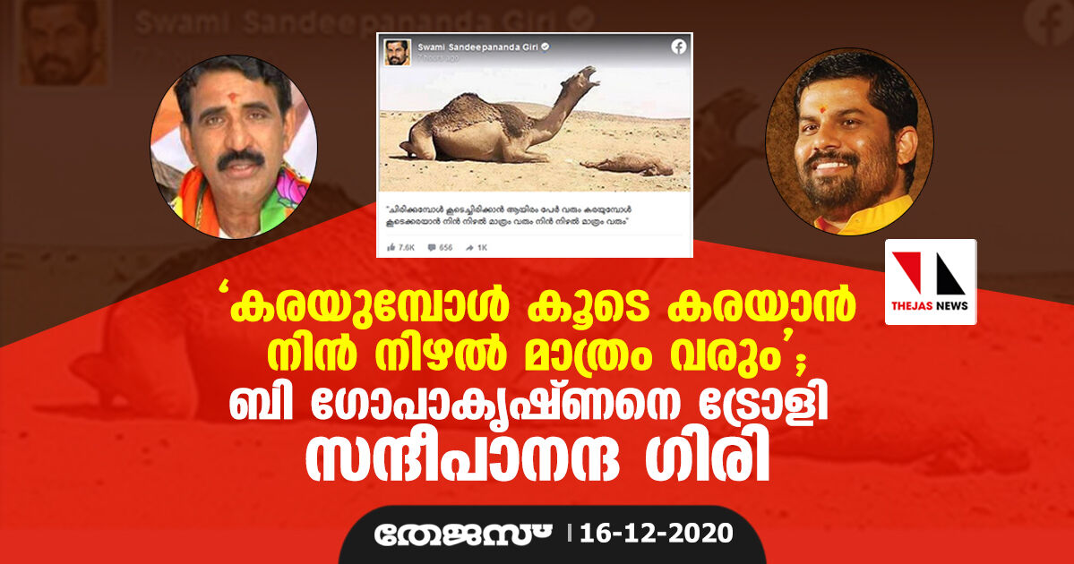 'കരയുമ്പോള് കൂടെ കരയാന് നിന് നിഴല് മാത്രം വരും'; ബി ഗോപാകൃഷ്ണനെ ട്രോളി സന്ദീപാനന്ദ ഗിരി