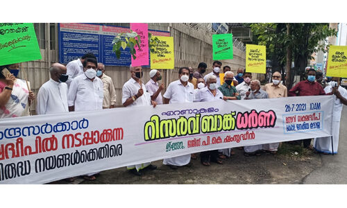 സേവ് ലക്ഷദ്വീപ്:കേരള ജനകീയ കൂട്ടായ്മ റിസര്വ്വ് ബാങ്കിനു മുന്നില് പ്രതിഷേധ ധര്ണ്ണ നടത്തി