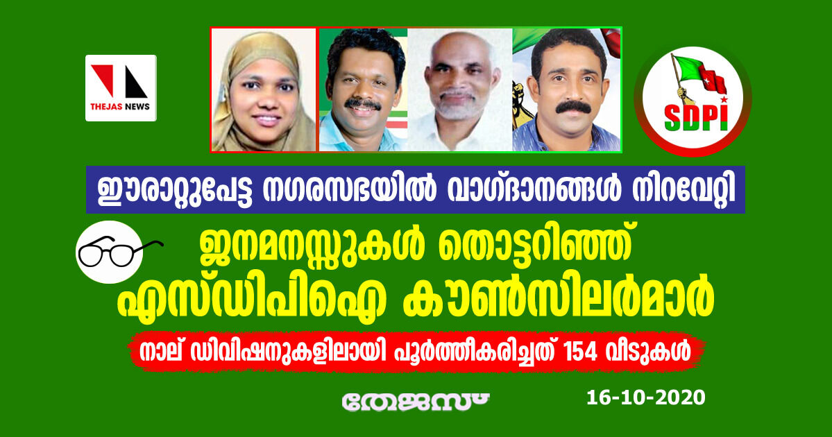 ഈരാറ്റുപേട്ട നഗരസഭയില് വാഗ്ദാനങ്ങള് നിറവേറ്റി, ജനമനസ്സുകള് തൊട്ടറിഞ്ഞ് എസ്ഡിപിഐ കൗണ്സിലര്മാര്