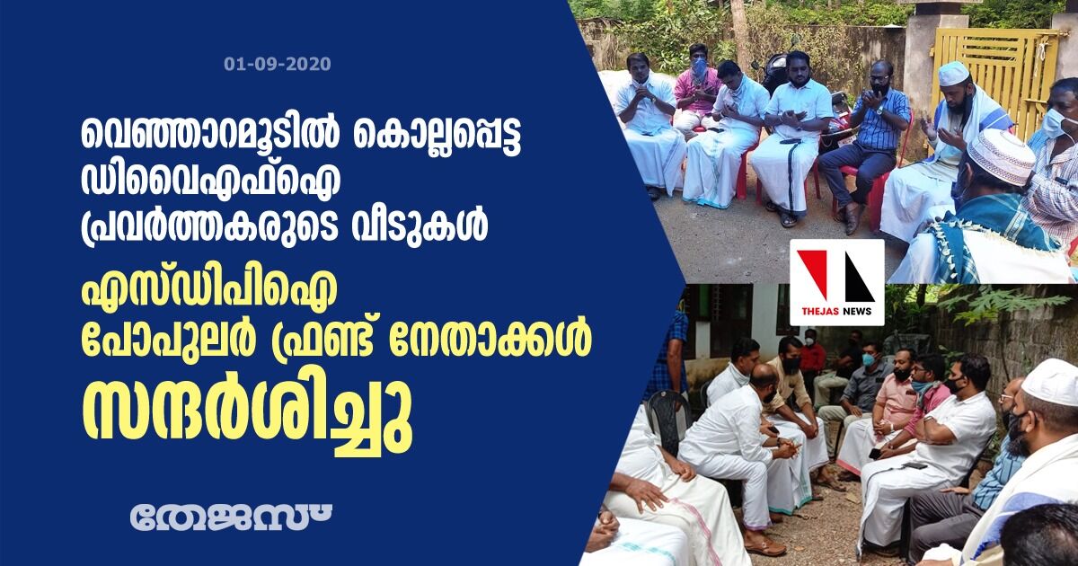 വെഞ്ഞാറമൂടിൽ കൊല്ലപ്പെട്ട ഡിവൈഎഫ്ഐ പ്രവർത്തകരുടെ വീടുകൾ എസ്ഡിപിഐ- പോപുലർ ഫ്രണ്ട് നേതാക്കൾ സന്ദർശിച്ചു