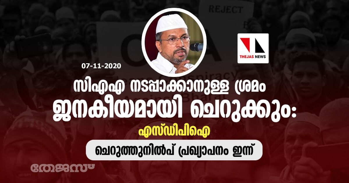 സിഎഎ നടപ്പാക്കാനുള്ള ശ്രമം ജനകീയമായി ചെറുക്കുമെന്ന് എസ്ഡിപിഐ; ചെറുത്തുനില്പ് പ്രഖ്യാപനം ഇന്ന്