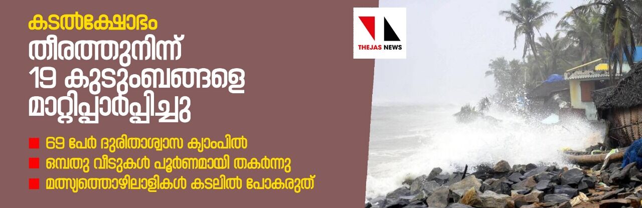 കടല്ക്ഷോഭം: തീരത്തുനിന്ന് 19 കുടുംബങ്ങളെ മാറ്റിപ്പാര്പ്പിച്ചു