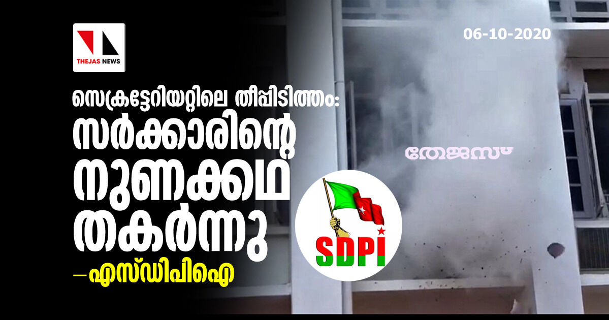 സെക്രട്ടേറിയറ്റിലെ തീപ്പിടിത്തം: സര്ക്കാരിന്റെ നുണക്കഥ തകര്ന്നു- എസ് ഡിപിഐ