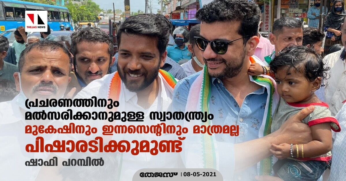 പ്രചരണത്തിനും മൽസരിക്കാനുമുള്ള സ്വാതന്ത്ര്യം മുകേഷിനും ഇന്നസെന്റിനും മാത്രമല്ല പിഷാരടിക്കുമുണ്ട്: ഷാഫി പറമ്പിൽ