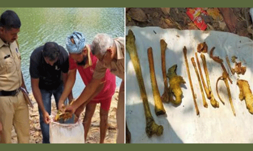 പാലത്തിനടിയില് ഒരു മണിക്കൂര് പരിശോധനയിലാണ് കാലിന്റെതും കൈകളുടെയും മറ്റു ശരീരഭാഗങ്ങളുടെതുമെന്ന് സംശയിക്കുന്ന അസ്ഥികള് കണ്ടെത്തിയത്.