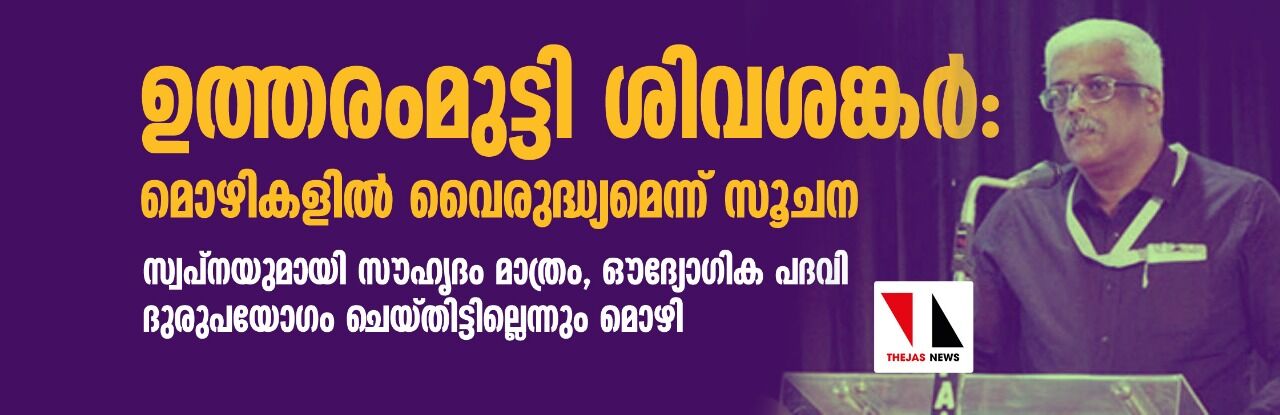 ഉത്തരംമുട്ടി ശിവശങ്കര്: മൊഴികളില് വൈരുദ്ധ്യമെന്ന് സൂചന; സ്വപ്നയുമായി സൗഹൃദം മാത്രം, ഔദ്യോഗിക പദവി ദുരുപയോഗം ചെയ്തിട്ടില്ലെന്നും മൊഴി