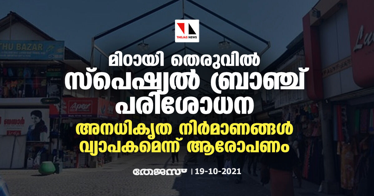 മിഠായി തെരുവില് സ്പെഷ്യൽ ബ്രാഞ്ച് പരിശോധന; അനധികൃത നിര്മാണങ്ങള് വ്യാപകമെന്ന് ആരോപണം