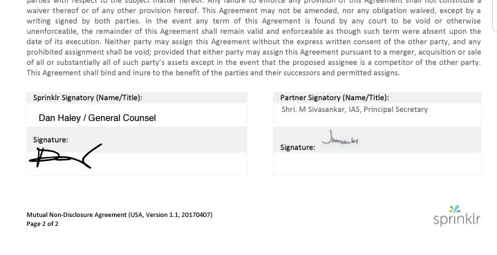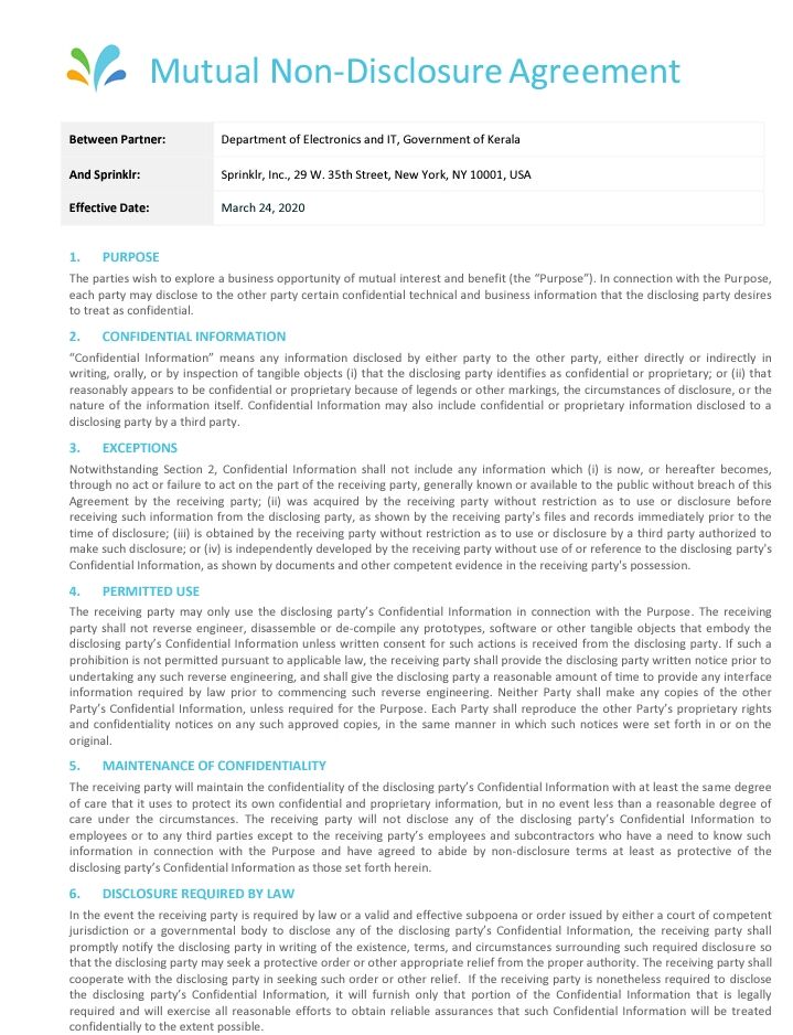 ബന്ധപ്പെട്ട വിവരങ്ങളെല്ലാം അതീവ രഹസ്യമായി സൂക്ഷിക്കുമെന്ന് സംസ്ഥാന സർക്കാരിന് ഉറപ്പാക്കുന്നതാണ് ഈ കരാർ. ഇതിൽ മാർച്ച് 24 ആണ് പ്രാബല്യത്തിൽ വരുന്ന തിയ്യതിയെന്നും വ്യക്തമാക്കുന്നു. എന്നാൽ പ്രോപ്പർട്ടീസ് പരിശോധിക്കുമ്പോൾ ഈ രേഖകൾ ഉണ്ടാക്കിയത് ഏപ്രിൽ 14 നാണെന്ന് വ്യക്തമാകും. ഏപ്രിൽ 14ന് ഉച്ചയ്ക്കാണ് ഈ രേഖ ഉണ്ടാക്കിയിരിക്കുന്നതെന്ന് സർക്കാർ വെബ്സൈറ്റിന്റെ പ്രോപ്പർട്ടീസ് തന്നെ വ്യക്തമാക്കുന്നു.