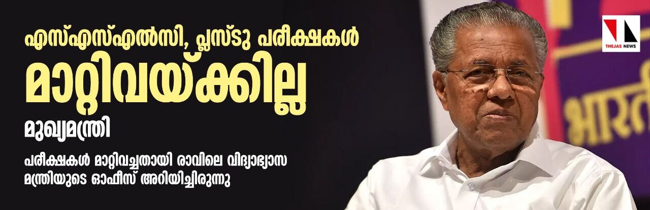എസ്എസ്എൽസി, പ്ലസ്ടു പരീക്ഷകൾ മാറ്റിവയ്ക്കില്ലെന്ന് മുഖ്യമന്ത്രി