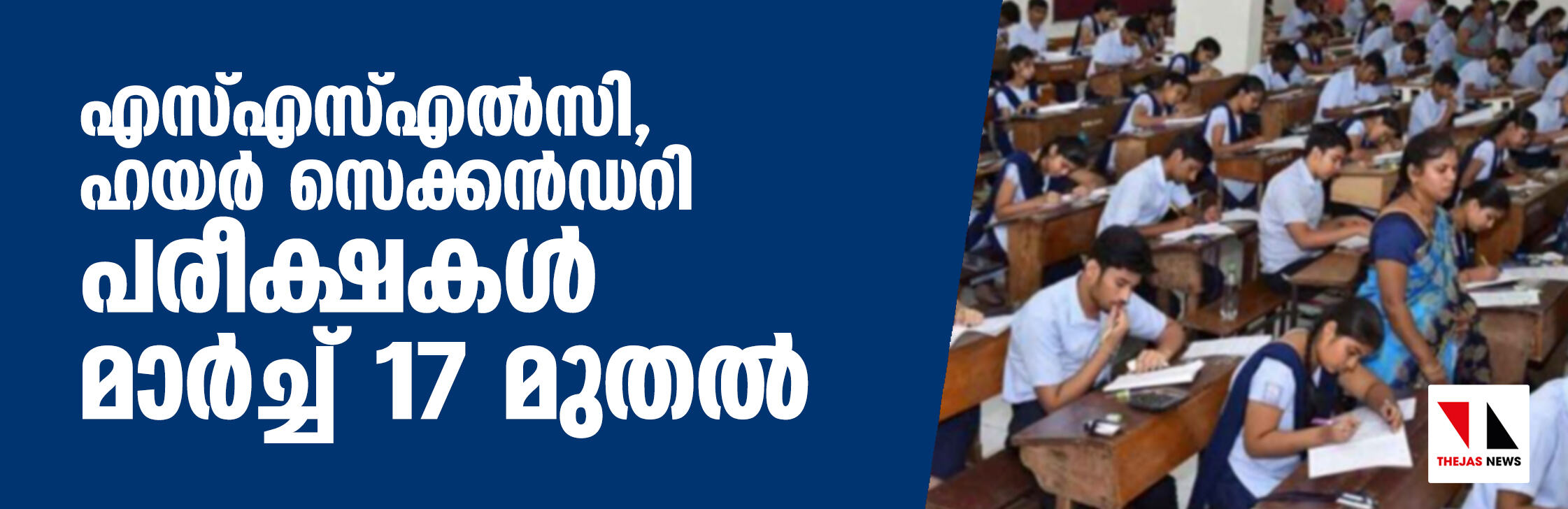 എസ്എസ്എല്സി, ഹയര് സെക്കന്ഡറി പരീക്ഷകള് മാര്ച്ച് 17 മുതല്