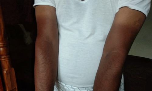 ബൈക്കില് കോഴിക്കോട് പോയി വൈകീട്ട് വീട്ടില് തിരിച്ചെത്തിയ ശേഷമാണ് സൂര്യാഘാതമേറ്റ നിലയില് രണ്ട് കൈമുട്ടുകളിലും പാട് കണ്ടെത്തിയത്.