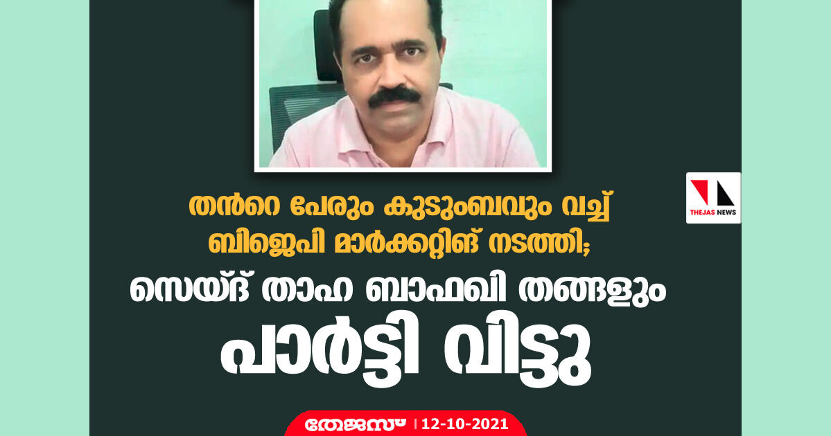 തൻറെ പേരും കുടുംബവും വച്ച് ബിജെപി മാർക്കറ്റിങ് നടത്തി; സെയ്ദ് താഹ ബാഫഖി തങ്ങളും പാർട്ടി വിട്ടു
