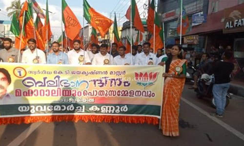 മുസ്ലിം പള്ളികള് തകര്ക്കുമെന്നും ബാങ്കുവിളികള് കേള്ക്കില്ലെന്നുമായിരുന്നു ഭീഷണി. ജയകൃഷ്ണന് മാസ്റ്റര് അനുസ്മരണ പരിപാടിയുടെ ഭാഗമായി നടന്ന റാലിക്കിടെയായിരുന്നു സംഭവം. പോലിസിന്റെയും ബിജെപിയുടെ മുതിര്ന്ന നേതാക്കളുടെയും സാന്നിധ്യത്തിലായിരുന്നു ഈ വെല്ലുവിളി. ബിജെപി സംസ്ഥാന ജനറല് സെക്രട്ടറി കെ രജ്ഞിത്ത്, കെ പി സദാനന്ദന്, ബിജെപി സംസ്ഥാന വക്താവ് സന്ദീപ് വാചസ്പതി തുടങ്ങിയ നേതാക്കള് റാലിയുടെ മുന്നിരയിലുണ്ടായിരുന്നു. സാമുദായിക ലഹളയുണ്ടാക്കല്, സംഘം ചേരല് തുടങ്ങി ഇന്ത്യന് ശിക്ഷാനിയമത്തിലെ 143, 147, 153 എ, 149 വകുപ്പുകള് പ്രകാരം കണ്ടാലറിയാവുന്ന 25 പേര്ക്കെതിരേയാണ് പോലിസ് കേസെടുത്തത്.