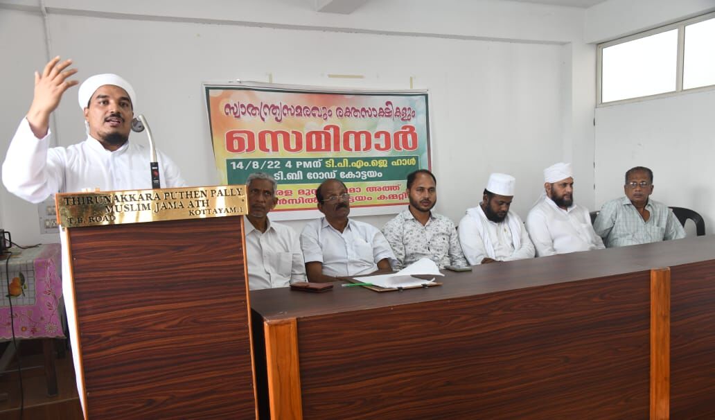 കോട്ടയം: സ്വാതന്ത്ര്യം നഷ്ടപ്പെടുത്തുന്ന അഭിനവ പ്രവണതകൾക്കെതിരേ സമൂഹം ജാഗരൂകരാകണമെന്ന് തിരുനക്കര പുത്തൻ പള്ളി ചീഫ് ഇമാം മഹ്മൂൻ ഹുദവി. കേരള മുസ്ലിം ജമാ അത്ത് കൗൺസിൽ കോട്ടയം ജില്ലാ കമ്മിറ്റി സംഘടിപ്പിച്ച സ്വാതന്ത്ര്യ സമരവും രക്തസാക്ഷികളും എന്ന സെമിനാർ ഉദ്ഘാടനം ചെയ്തുകൊണ്ട് സംസാരിക്കുകയായിരുന്നു അദ്ദേഹം.