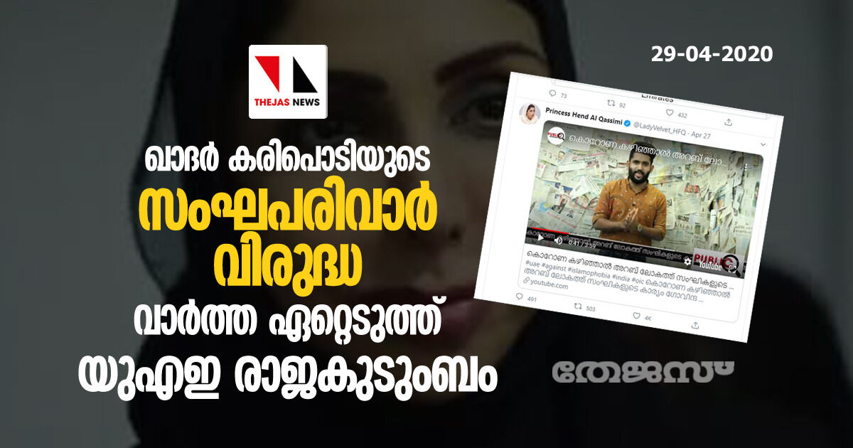 ഖാദർ കരിപൊടിയുടെ സംഘപരിവാർ വിരുദ്ധ വാർത്ത ഏറ്റെടുത്ത് യുഎഇ രാജകുടുംബം