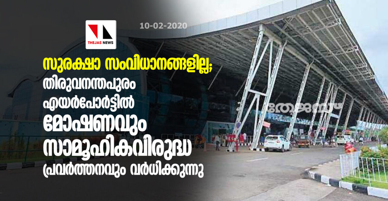 സുരക്ഷാ സംവിധാനങ്ങളില്ല; തിരുവനന്തപുരം എയർപോർട്ടിൽ മോഷണവും സാമൂഹികവിരുദ്ധ പ്രവർത്തനവും വർദ്ധിക്കുന്നു