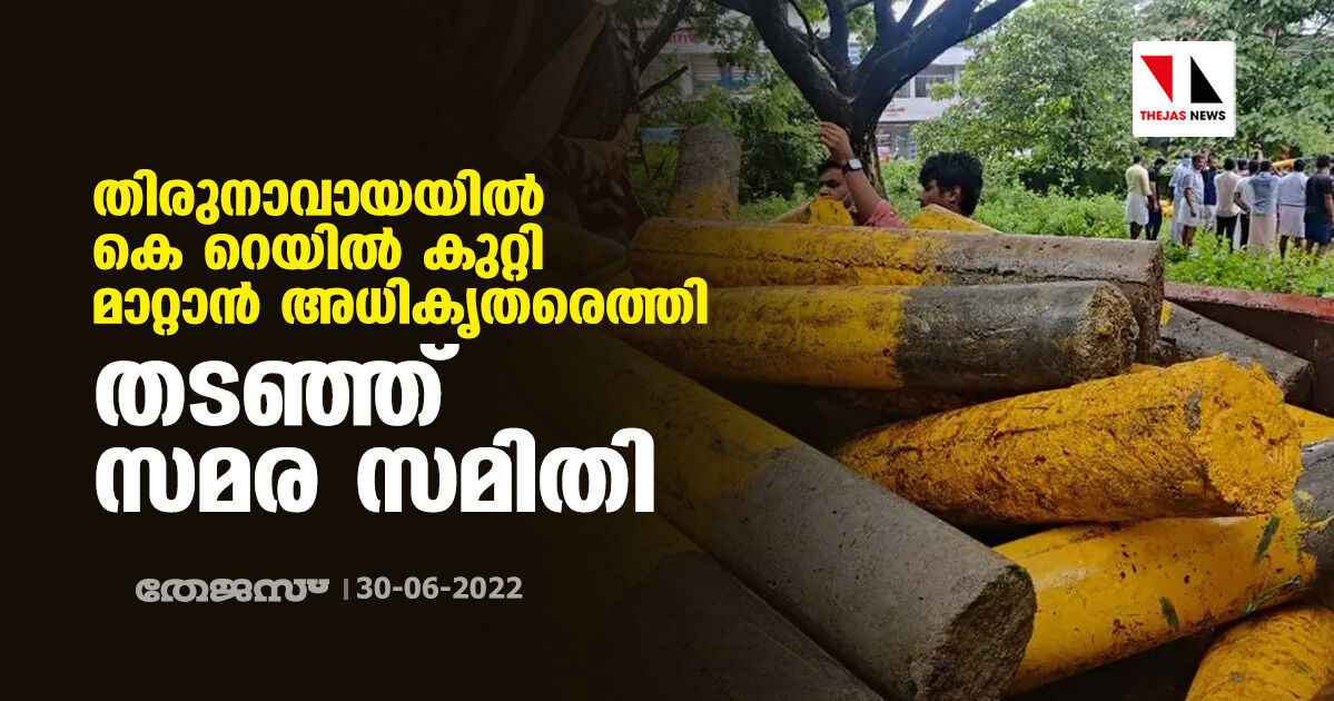 തിരുനാവായയിൽ കെ റെയില് കുറ്റി മാറ്റാന് അധികൃതരെത്തി; തടഞ്ഞ് സമര സമിതി