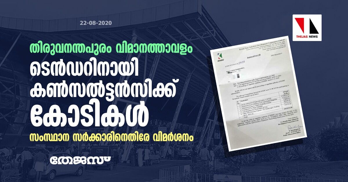 തിരുവനന്തപുരം വിമാനത്താവളം: ടെൻഡറിനായി കണ്സല്ട്ടന്സിക്ക് കോടികള്; സംസ്ഥാന സര്ക്കാരിനെതിരേ വിമര്ശനം