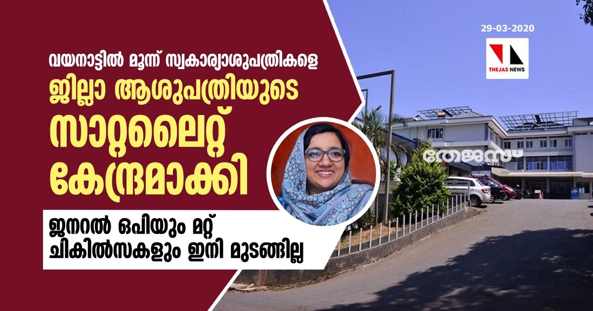 വയനാട്ടില് മൂന്ന് സ്വകാര്യാശുപത്രികളെ ജില്ലാ ആശുപത്രിയുടെ സാറ്റലൈറ്റ് കേന്ദ്രമാക്കി